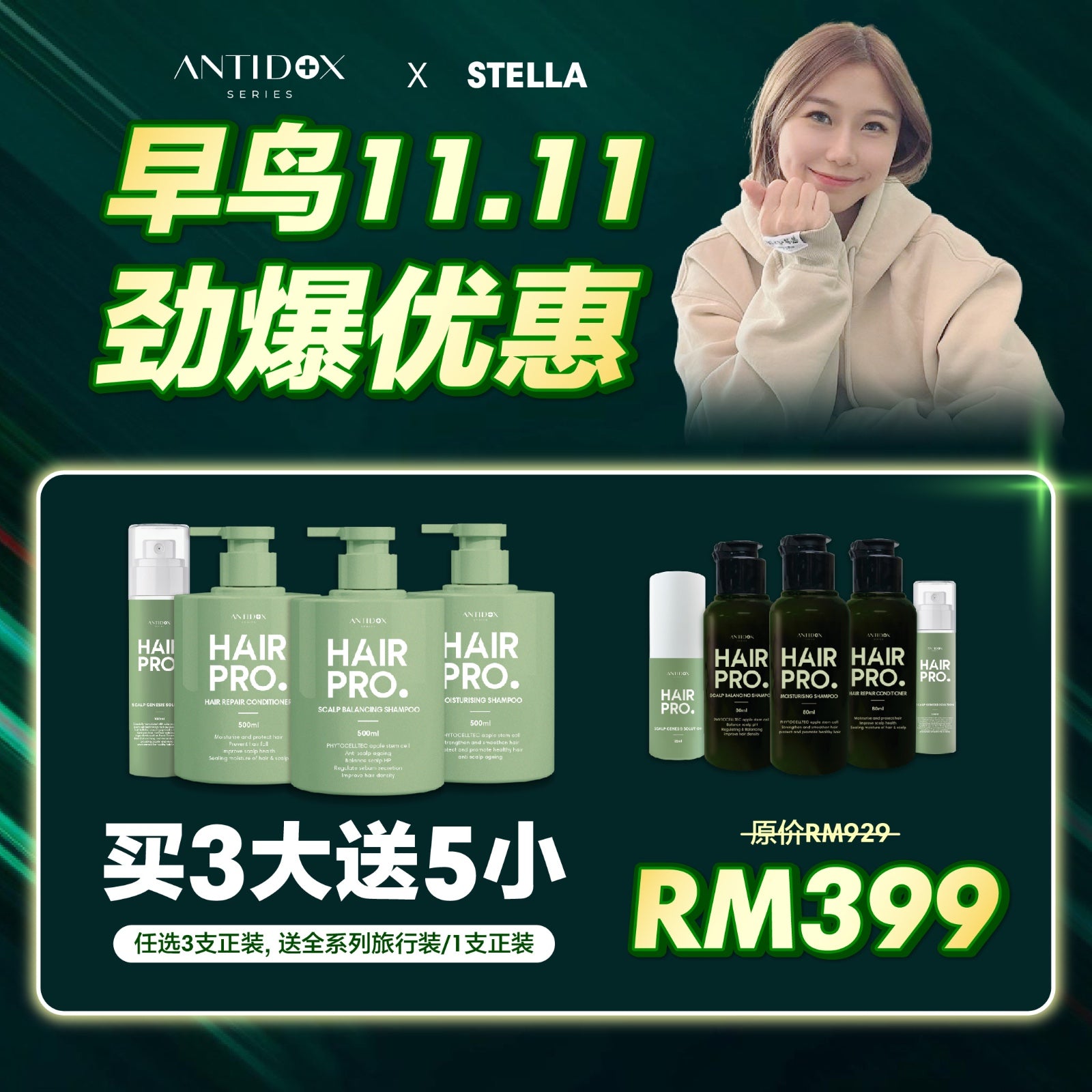 ANTIDOX HAIRPRO EARLY BIRD 11.11 MEGA SALES BUY 2 FREE 2 RM399 x STELLA