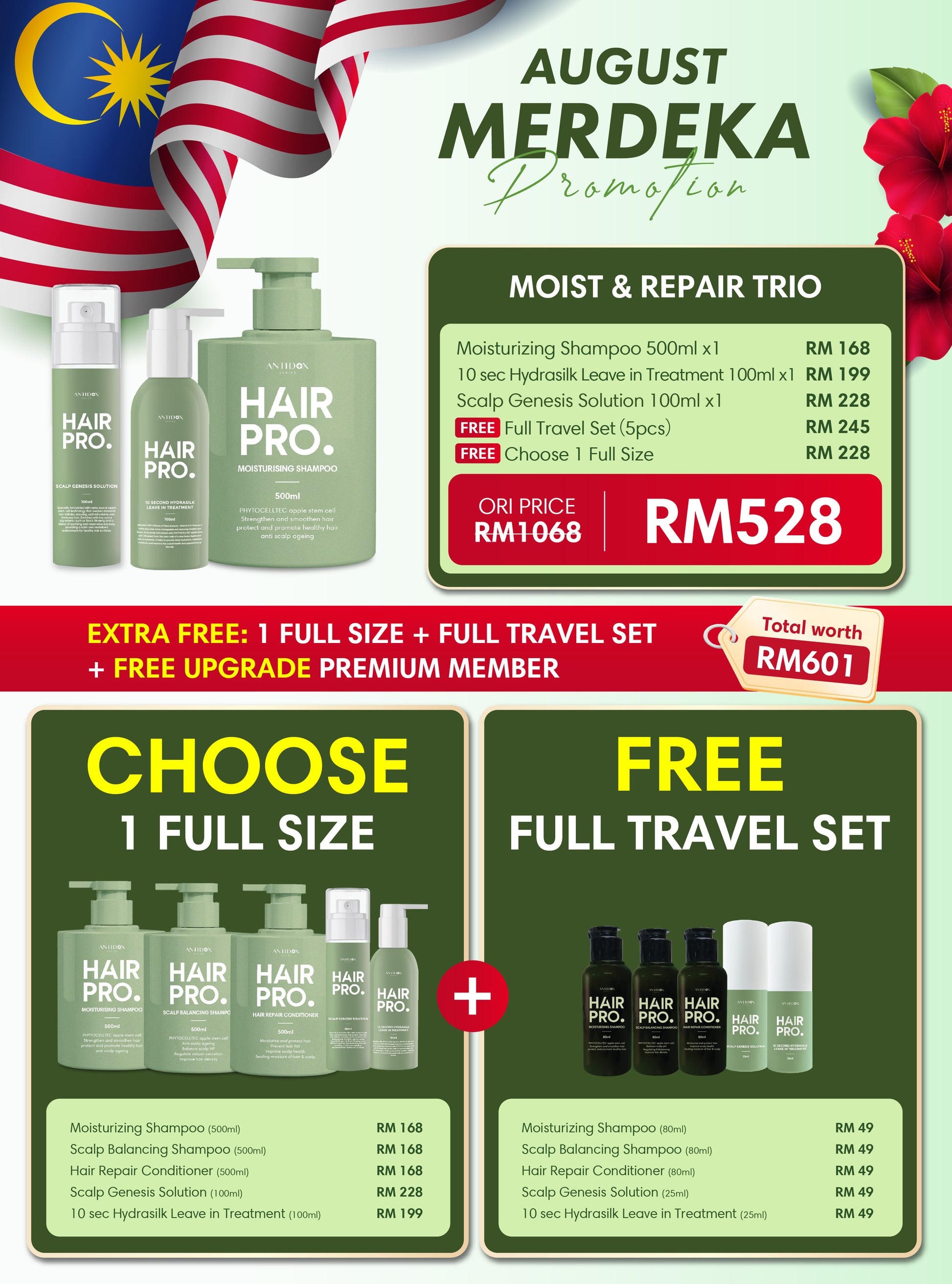 AUG HAIRPRO MERDEKA PROMOTION PACKAGE RM528 BUY 3 FREE 6 MOIST & SCALP & TONIC